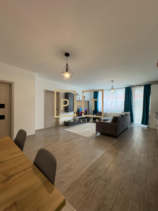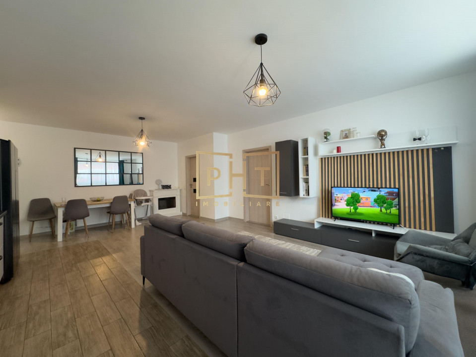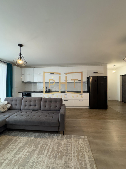 - Living open-space cu bucatarie care creează un spațiu ideal pentru socializare și relaxare.